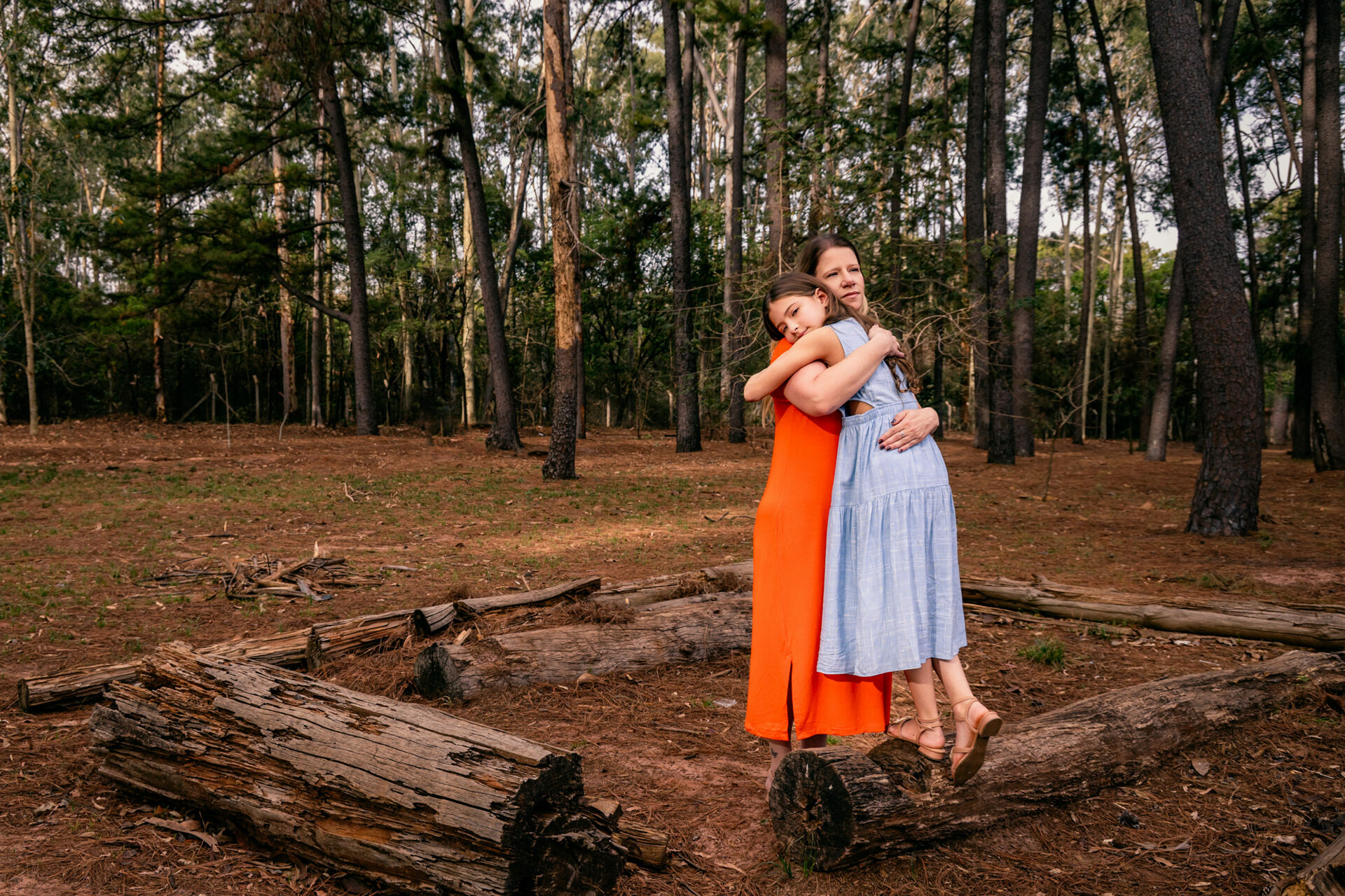 Meu convite foi para criar um espaço de afeto, onde elas pudessem ser elas mesmas, sem poses forçadas. O objetivo era capturar a cumplicidade no olhar, a espontaneidade de um abraço e a beleza da relação que construíram.